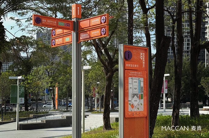 活力的色彩、利落的線條、現(xiàn)代的造型,既彰顯著體育賽事的激情與活力,又蘊含著對未來體育事業(yè)、城市發(fā)展的美好期許。麥肯標(biāo)識以專業(yè)導(dǎo)視服務(wù),讓寶安體育場館的標(biāo)識,成為連接建筑、人與賽事的重要紐帶。