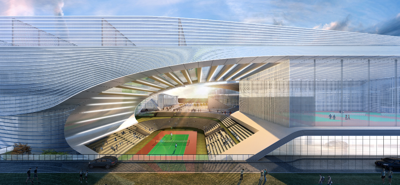 寶安體育中心云館位于深圳市寶安區(qū)體育中心地塊內(nèi),東側(cè)臨體育中心綜合訓(xùn)練館,南鄰體育中心游泳場(chǎng)館,西臨體育館,北鄰羅田路。項(xiàng)目總用地面積21000㎡,總建筑面積60600㎡,地上3層,限高24m。要求其功能設(shè)置需要擁有室外網(wǎng)球場(chǎng),并且可滿足國(guó)家級(jí)比賽要求,并配有其它多功能體育館。