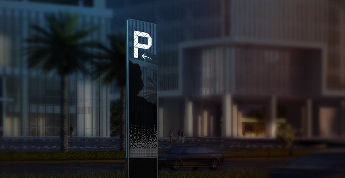 麥肯秉持“科技、時尚、年輕、未來”的設(shè)計理念,充分表達(dá)了潮流、前衛(wèi)、創(chuàng)新以及富有活力的詮釋。從玻璃、星空、未來采集設(shè)計元素,對元素進(jìn)行組合、運用、修飾、轉(zhuǎn)化和再造等,應(yīng)用到云升科學(xué)園標(biāo)識系統(tǒng)設(shè)計之中,色彩采用了天際藍(lán),材質(zhì)則采用不銹鋼烤漆,亞克力貼于玻璃表面,玻璃背面貼膜,信息內(nèi)容鏤空,圖形部分透光,內(nèi)置LED光源,奪目星空,璀璨未來。