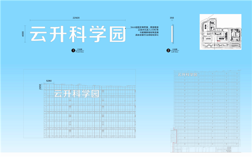 從玻璃、星空、未來(lái)采集設(shè)計(jì)元素,對(duì)元素進(jìn)行組合、運(yùn)用、修飾、轉(zhuǎn)化和再造等,應(yīng)用到云升科學(xué)園標(biāo)識(shí)系統(tǒng)設(shè)計(jì)之中,色彩采用了天際藍(lán),材質(zhì)則采用不銹鋼烤漆,亞克力貼于玻璃表面,玻璃背面貼膜,信息內(nèi)容鏤空,圖形部分透光,內(nèi)置LED光源,奪目星空,璀璨未來(lái)。