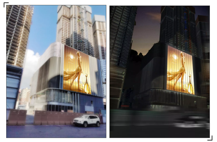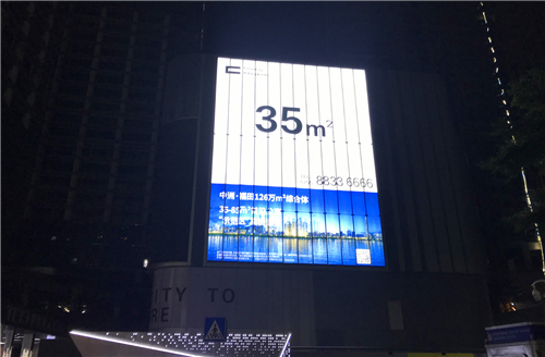中洲燈箱廣告面積達(dá)410㎡,采用鋁型材活動門、可編程LED光源、高透光燈箱布等前沿環(huán)保材料,與玻璃幕墻完美融合。