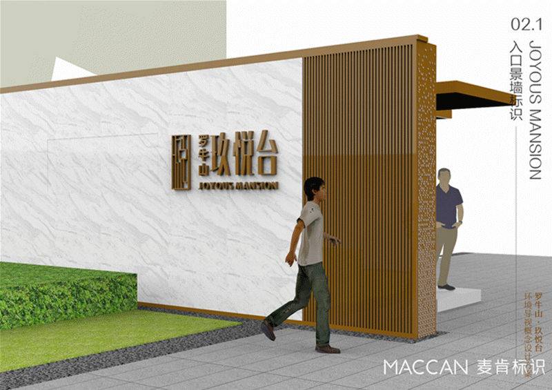 羅牛山玖悅臺(tái)標(biāo)識(shí)造型提煉于建筑設(shè)計(jì)語(yǔ)言,現(xiàn)代簡(jiǎn)約,強(qiáng)調(diào)建筑體塊的虛實(shí)劃分與立面節(jié)奏,以輕盈感剛?cè)岵?jì)的形象,打造典雅精致、指引清晰和優(yōu)雅耐看的氣質(zhì)。