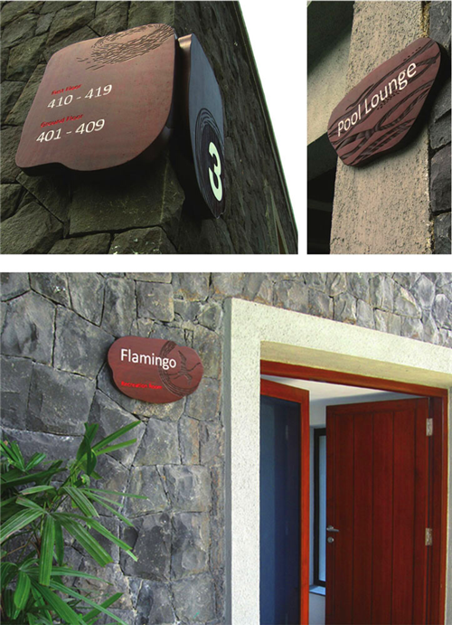 園林景觀是一個戶外開放型的公共空間,從基本特征來看,園林占地面積大、樹木的遮蔽性大、景點比較分散、環(huán)境的可識別性相對弱,游客迫切地需要一個導向明確而簡捷的導視系統(tǒng)。園林景觀的導視系統(tǒng)主要有園林平面圖、場所方位指示和場所標識、科普文化標識、警示標識等。有的公園還配備了導游手冊,主要是將道路、景觀、場所一一標注出來,只要你一進入公園就可以將公園的結(jié)構(gòu)看得一清二楚。在設計時應考慮既不能破壞園林整體氣氛,又可以達到引導、吸引游客的目的。由于范圍廣泛,園林的導視密度相對降低,體量感相對增大,而且導視系統(tǒng)設計風格、色彩統(tǒng)一性,以及形式感都可以相對自由、新穎,給人深刻印象。