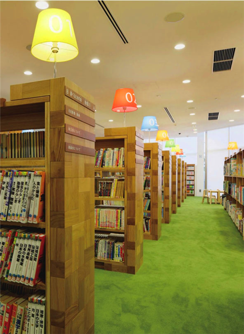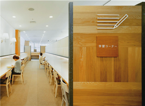 6D設(shè)計(jì)工作室受邀對(duì)2010年重新選址后的Kounosu中心圖書館進(jìn)行室內(nèi)設(shè)計(jì)和導(dǎo)視系統(tǒng)設(shè)計(jì)的工作。他們的目標(biāo)就是要改變?nèi)藗兤毡閷?duì)圖書館的看法,營造一個(gè)令人感覺舒適而愉悅的空間,例如,選用木板來取代以往的人工材料,擺脫以往的刻板和嚴(yán)肅形象。