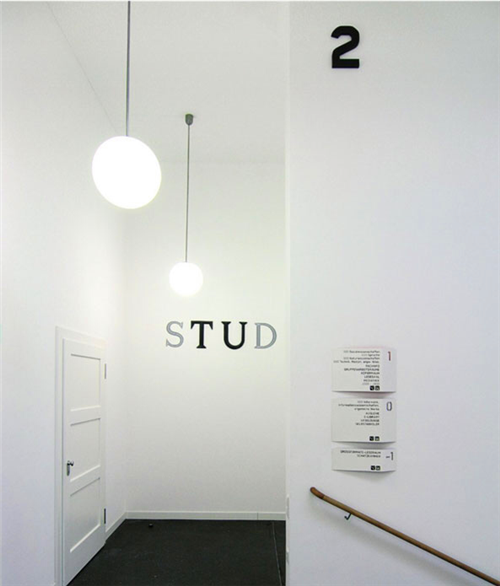 導(dǎo)視系統(tǒng)的設(shè)計(jì)在一定程度上展現(xiàn)了大樓的歷史底蘊(yùn),主要還是對(duì)以往的導(dǎo)視系統(tǒng)招牌做一個(gè)翻新和變革。字體的設(shè)計(jì)仿佛將人們帶回了那個(gè)熟悉的20世紀(jì)30年代。通過融合了antiqua和grotesque的字體設(shè)計(jì)之后,字體讓人感受到現(xiàn)代氣息的同時(shí),仍透露出歷史的古老閱讀氛圍。