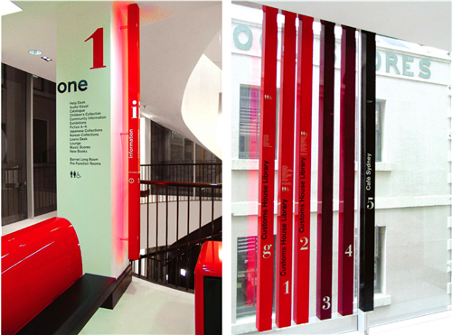 悉尼的Customs House是一家具有強烈現(xiàn)代設計感的圖書館,是悉尼最重要的歷史建筑之一。Frost設計工作室參與了一系列的導視系統(tǒng)設計,包括圖書館前院的圖案設計等重要的工作。