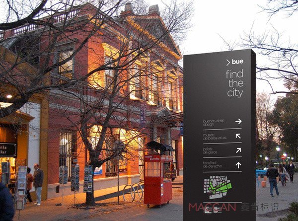 商業(yè)街區(qū)指路牌的設(shè)計(jì)必須充分體現(xiàn)其功能特性,在設(shè)計(jì)上要具備便于識別、便于使用、便于清潔三個(gè)方面的功能。便于識別表現(xiàn)在識別系統(tǒng)設(shè)計(jì)標(biāo)準(zhǔn)化、形象化、國際化和個(gè)性化,強(qiáng)調(diào)整體性,傳達(dá)內(nèi)容迅速直觀而準(zhǔn)確。便于使用,要求設(shè)計(jì)尺度合理、結(jié)構(gòu)簡易、使用簡單。