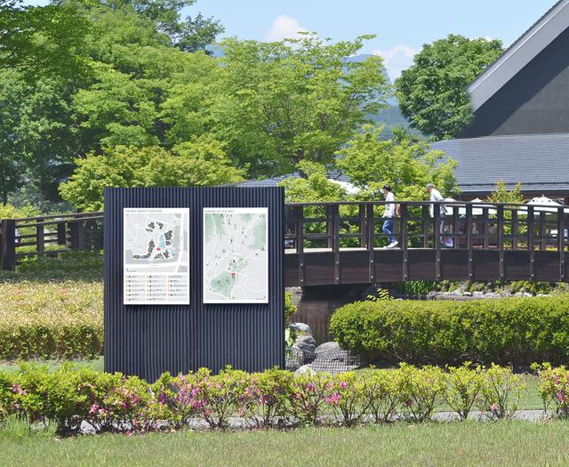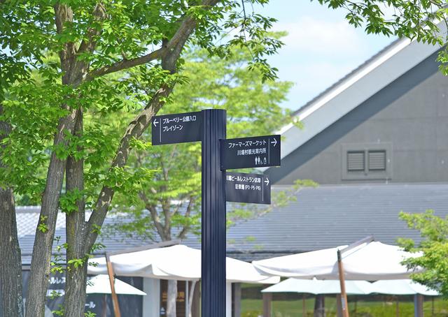 川場村,是位于日本群馬縣一個小型旅游景點,景色優(yōu)美,溫度適宜,很受游客歡迎,每年有大致120萬游客到訪。因為預算有限,設計師采用了價格低廉的瓦楞板來做標識牌。金屬瓦楞板耐腐蝕,而且材料可以讓人很容易聯(lián)想到自然和“耕作”,和川場村大量依賴農業(yè)經濟的實際情況相符合。但是瓦楞板的波浪形表面,導致直接寫在瓦楞板上的內容很難別識別,需要經過設計處理,讓標識顯得有節(jié)奏感。
