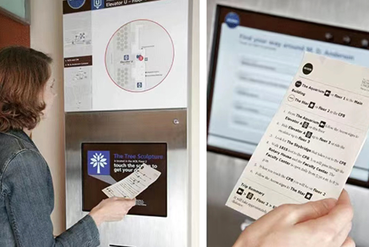 如美國德州大學(xué)MD安德森癌癥中心,就采用了觸摸屏導(dǎo)航信息亭為患者和參觀者提供導(dǎo)覽提供預(yù)約確認(rèn)和步行路線導(dǎo)向服務(wù),并可跟隨界面標(biāo)識指令打印輸出相關(guān)信息。