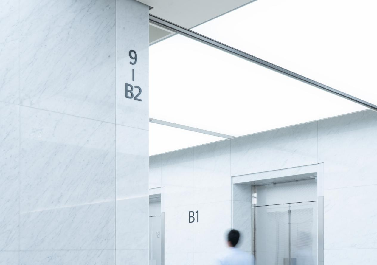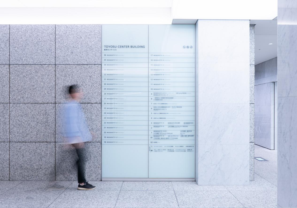 豐洲中心大樓位于日本東京都江東區(qū),地處海灣區(qū)域,平面圖接近正方形,擁有完善的辦公和配套設施,基于豐洲中心大樓的地理位置,設計采用藍色、深藍色對區(qū)域進行劃分,與大海元素呼應。標牌采用玻璃材質,直接與墻面相融合,簡約的排版搭配無襯線字體,整套導視系統(tǒng)視覺上具有清透感。