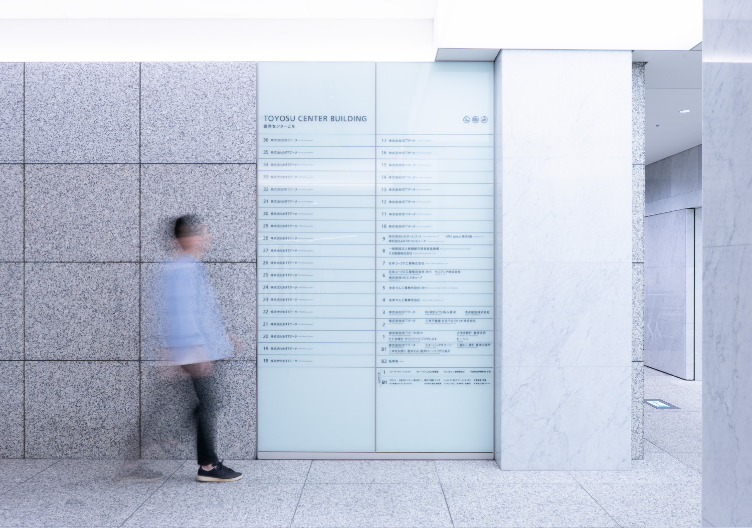 豐洲中心大樓位于日本東京都江東區(qū),地處海灣區(qū)域,平面圖接近正方形,擁有完善的辦公和配套設(shè)施,uji設(shè)計(jì)公司受邀為其進(jìn)行導(dǎo)視系統(tǒng)設(shè)計(jì)。