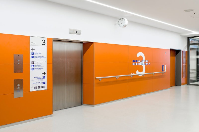 基于翻新后的Charité醫(yī)院,moniteurs公司在應(yīng)急服務(wù)大樓外立面設(shè)計了紅色的線條引導(dǎo)元素,與白色外立面形成強(qiáng)烈的視覺沖擊力,有助于急診快速定位。內(nèi)部巨大的icon便于進(jìn)行訪問,樓層采用色彩編碼,整套導(dǎo)視系統(tǒng)信息完善,具有良好的信息傳達(dá)度。