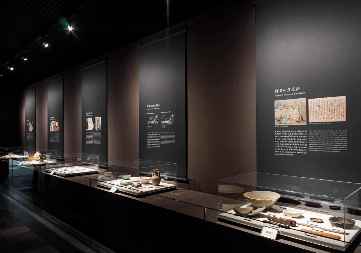 鐮倉(cāng)歷史文化博物館是由世界著名建筑師諾曼·福斯特設(shè)計(jì)事務(wù)所(Foster + Partners)設(shè)計(jì)的私人住宅改建而成,館內(nèi)展品以鐮倉(cāng)發(fā)掘出土的文物為主,介紹從史前時(shí)代、古代到現(xiàn)代鐮倉(cāng)的歷史。該博物館使用投影和VR展示展品,館內(nèi)擁有隨處可見(jiàn)的特殊建筑材料,設(shè)計(jì)公司采用黑白配色,根據(jù)最新考古發(fā)掘的結(jié)果設(shè)計(jì)了新的介紹面板,搭配圖片和文字解說(shuō)。特別的是,標(biāo)牌多使用掛布和獨(dú)立的金屬面板,有助于保護(hù)建筑內(nèi)飾,便于根據(jù)展覽內(nèi)容進(jìn)行內(nèi)容更替。