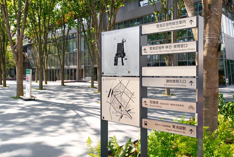 terada設(shè)計工作室受委托為豐島Ecomuse Town項目設(shè)計導向標識系統(tǒng),旨在確保訪客和居民能夠輕松地在綜合體內(nèi)部導航。在規(guī)劃標識系統(tǒng)時,設(shè)計師們巧妙地將各種標識面板設(shè)計成與Ecoveil面板相同的1:6長寬比,這樣的比例不僅與建筑的外觀設(shè)計相呼應(yīng),也強化了整個項目的視覺連貫性。手法不僅體現(xiàn)了對建筑美學的深刻理解,也展示設(shè)計工作室在導視系統(tǒng)設(shè)計上的專業(yè)性和創(chuàng)新能力。