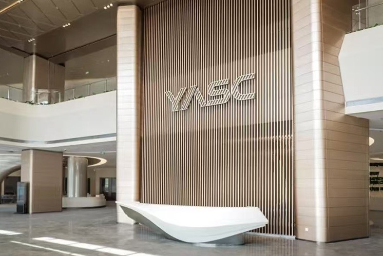 長(zhǎng)飛半導(dǎo)體園區(qū)的每一處空間都蘊(yùn)含著獨(dú)特的文化與創(chuàng)意,而文化墻更是這片科技圣地的靈魂之窗。采用高級(jí)地毯材料打造的文化墻,以藍(lán)色與綠色為主色調(diào),巧妙地將科技的冷峻與自然的生機(jī)完美融合,讓訪客在感受園區(qū)獨(dú)特的藝術(shù)魅力的同時(shí),也能領(lǐng)略到創(chuàng)新精神的內(nèi)涵。文化墻以深邃的藍(lán)色為底色,仿佛無(wú)垠的宇宙星空,象征著科技的無(wú)限可能與探索的勇氣。其間的翠綠色,則如同生機(jī)盎然的綠洲,代表著創(chuàng)新的活力與希望。兩者相互交織,是對(duì)生態(tài)與和諧的深刻理解。選用的織棉材料,質(zhì)地柔軟而富有彈性,觸感溫潤(rùn)如玉。在視覺(jué)上營(yíng)造出一種柔和而高級(jí)的氛圍,紋理細(xì)膩,仿佛細(xì)膩的織錦,彰顯了園區(qū)文化的深度與溫度。
