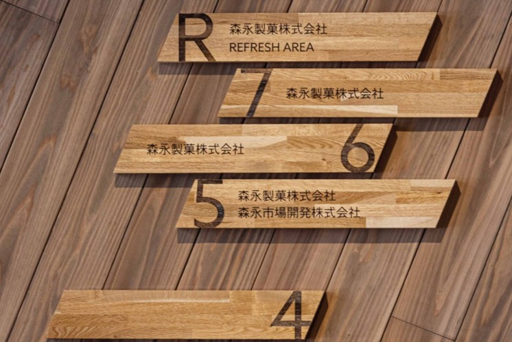 標(biāo)識(shí)大量運(yùn)用木材,木材源于創(chuàng)始人出生地,承載著企業(yè)歷史與情感根基。木質(zhì)材料的使用,讓標(biāo)識(shí)與 “通過食物提供快樂健康生活” 的企業(yè)理念相呼應(yīng),傳遞自然、溫暖的質(zhì)感,仿佛將森林的饋贈(zèng)直接引入辦公空間,成為連接企業(yè)起源與現(xiàn)代辦公環(huán)境的紐帶。