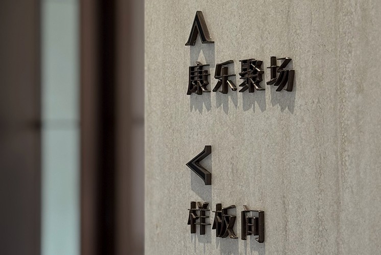 散落各處的古銅色三維尖錐立體字,通過精密鍛造工藝塑造出強(qiáng)烈立體感,尖錐造型的力量感與古銅材質(zhì)的奢華感交織,讓每一處標(biāo)識(shí)都成為藝術(shù)品。立體字在光線下折射出細(xì)膩紋理,因光線變化呈現(xiàn)的深淺質(zhì)感,讓標(biāo)識(shí)成為空間里的 “光影玩家”。