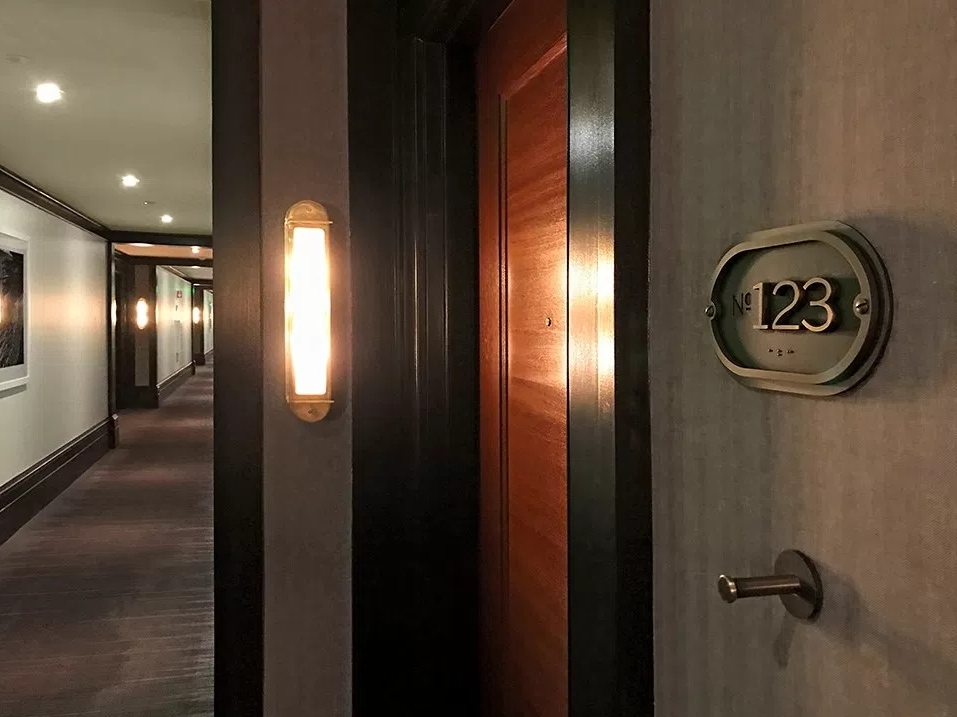 酒店的洗手間,大堂,樓層,房間,餐廳,地下車庫,會議中心,SPA,游泳池,酒吧,健體中心,氧吧,服務(wù)臺,行政樓等區(qū)域都要靠靜態(tài)標識來引導指示,信息傳遞使酒店在運行上得到更好的完善,給客人對酒店的各區(qū)域了解更有明確的方向感。酒店室內(nèi)靜態(tài)標識主要以貼壁式,吊掛式,立地式的形態(tài)安裝于酒店的各公共區(qū)域。