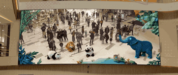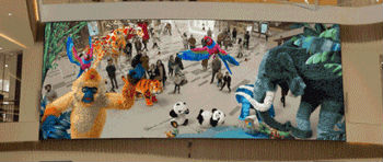 這塊LED大屏就不僅僅是展示視覺畫面這么簡單了,你還能跟屏幕里的動(dòng)畫實(shí)時(shí)互動(dòng)。