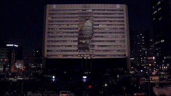 更瘋狂的是,他們還把韓國總統(tǒng)投影在他們的作品里,刷新了全世界電視臺(tái)的歷史。