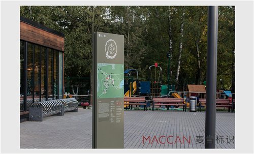 “標(biāo)識系統(tǒng)設(shè)計”是公園公共空間的重要組成部分,它以規(guī)劃和設(shè)計連貫指示系統(tǒng)為內(nèi)容,融合了地域文化、公園平面地圖、標(biāo)志、定向標(biāo)識指示和貫穿于建筑環(huán)境的細(xì)節(jié)線索,幫助人們在不同的地理位置中尋找定向。好的導(dǎo)視系統(tǒng)中既有清晰易懂的指示和信息,也具有隱含意義和符號。