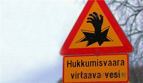 上面這個圖片是在芬蘭街道上看到的,如果你只看圖形,會認為是前面有怪獸的提示,但看了文字后,它好像是提示說請人們小心薄冰的意思,不過這個街邊標(biāo)識并不在芬蘭道路管理局列出的道路標(biāo)識一覽表中,所以到底啥意思還有待考證了。