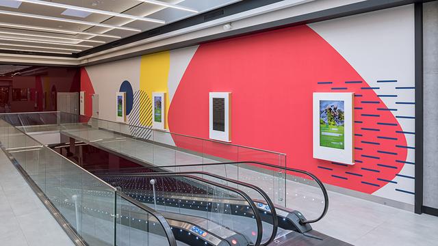 本套導視系統(tǒng)由Blank Studio設計,包括內(nèi)部購物通道、樓梯、停車場和商場周邊外部區(qū)域的標識系統(tǒng)的圖形和工業(yè)設計,同時也為該購物中心設計了1套獨特的標識系統(tǒng),并且開發(fā)了整個系統(tǒng)的圖形語言。本套導視運用了多種色彩進行搭配,以突顯溫暖的氛圍。