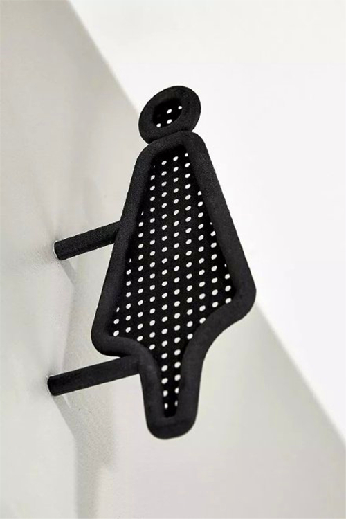 標識設計采用了3D打印技術制作標牌,圓點網眼和圓潤的icon使標牌看起來更加精致具有質感。整套導視系統采用無襯線字體,更具現代化,易于辨識。黑白色的配色與環(huán)境高度融合,形成統一的視覺系統。