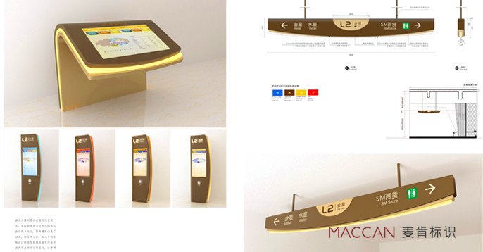 SM天津濱海城市廣場導視系統(tǒng)設(shè)計的大小是以環(huán)境背景為參照,在設(shè)計滿足本質(zhì)功能的同時,與整體環(huán)境協(xié)調(diào)統(tǒng)一。商場導視系統(tǒng)設(shè)計制作材料的質(zhì)感和肌理對傳達整體環(huán)境有著重要的作用,為使人對商場空間環(huán)境產(chǎn)生整體的認同感,材料也應(yīng)與環(huán)境本身匹配并有適度的對比。