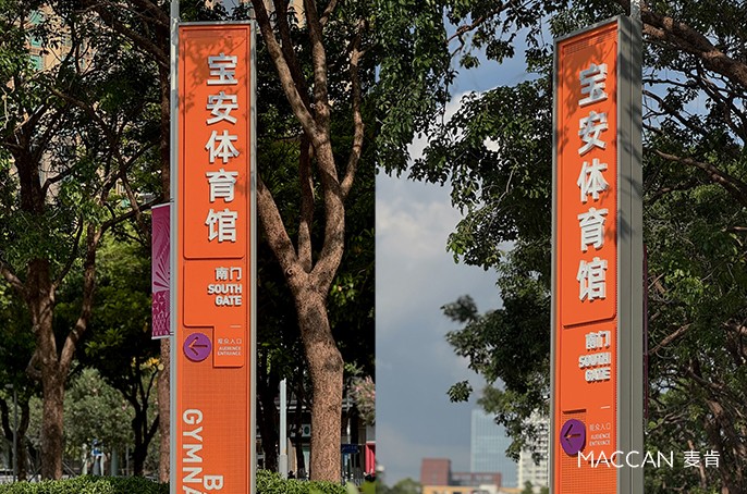 活力的色彩、利落的線條、現(xiàn)代的造型,既彰顯著體育賽事的激情與活力,又蘊含著對未來體育事業(yè)、城市發(fā)展的美好期許。麥肯標(biāo)識以專業(yè)導(dǎo)視服務(wù),讓寶安體育場館的標(biāo)識,成為連接建筑、人與賽事的重要紐帶。