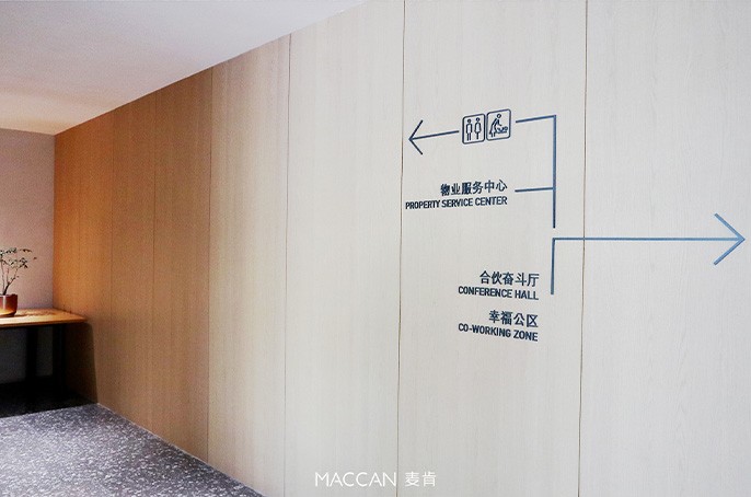 導(dǎo)視簡約形態(tài)如自由的風(fēng)、無形的畫筆,肆意地在建筑內(nèi)部揮灑,帶來清新與活力,它穿梭于廊柱之間,跳躍在窗欞之上,將城市的喧囂與自然的寧靜,揉雜下顯現(xiàn)商務(wù)與科技空間的生命力,城市的邊界感漸模糊,直至消失。