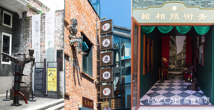 此次老城改造,麥肯團隊擔綱“永慶坊”的標識系統(tǒng)設計塑造,西關(guān)打銅是恩寧路的標志之一 ,永慶坊的導視系統(tǒng)與現(xiàn)場文化包裝,沿用了“西關(guān)打銅”元素,將銅元素與西關(guān)的嶺南花窗符號結(jié)合,在門牌號與場地指示牌中進行展現(xiàn),致敬西關(guān)打銅的文化傳統(tǒng)。