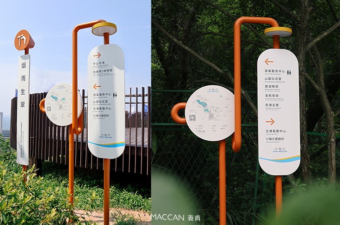 此次項(xiàng)目更加注重一山、一海、一世界的氛圍打造,導(dǎo)視牌連接小梅沙的”城“與”?!?,以層次遞進(jìn)地溫和過度,在這邊記憶中徜徉著無線活力樂趣。