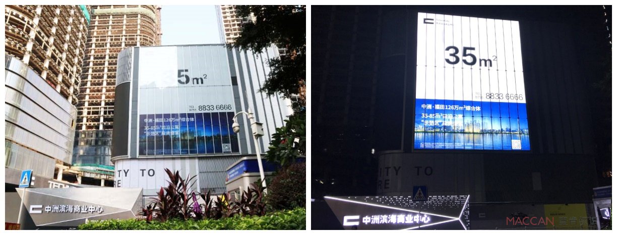 隨著燈箱廣告覆蓋率日益增加,中洲濱海商業(yè)中心也采用超大燈箱廣告的應(yīng)用,使畫面主題視效能高度聚焦。此次廣告燈箱由麥肯團隊設(shè)計制作,為實現(xiàn)最佳觀感體驗,采用LED可重復(fù)編程光源,取代傳統(tǒng)燈箱光源,通過編輯光的動靜、強弱、快慢的節(jié)律變化,結(jié)合畫面意境,產(chǎn)生極具動感與美感的視覺沖擊,進而提升廣告關(guān)注度。