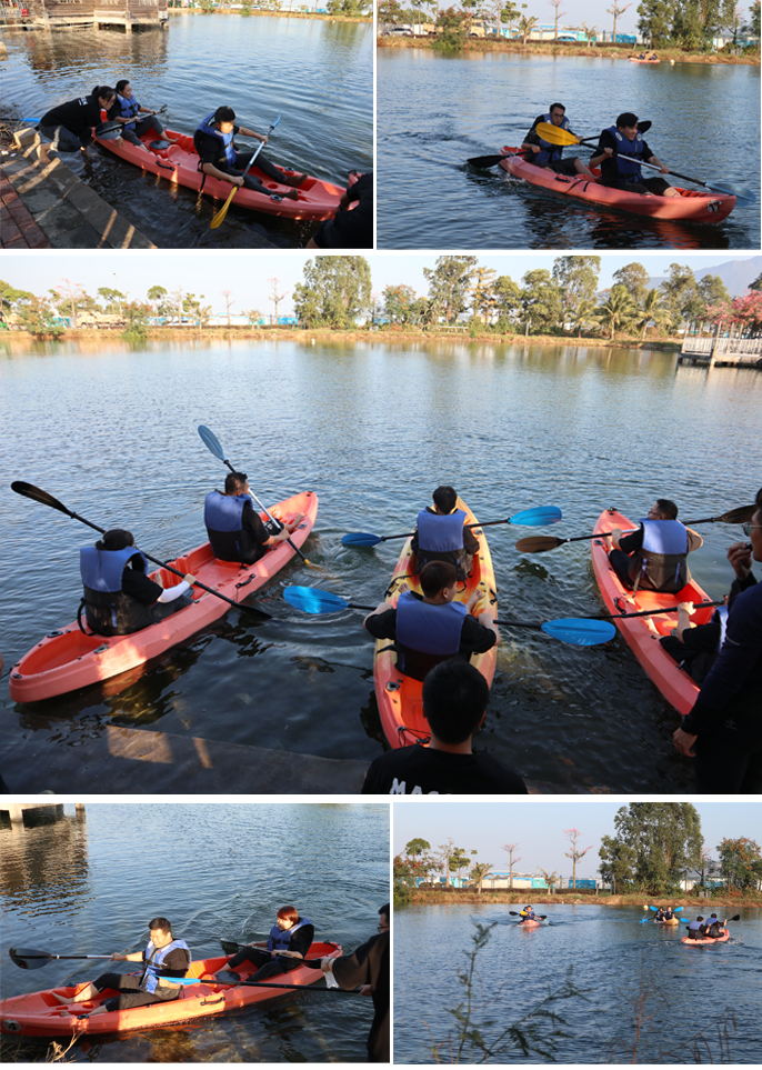 劃皮艇項(xiàng)目中,隊(duì)員們緊密配合,齊心協(xié)力,在湖面上劃出了一道道美麗的弧線。