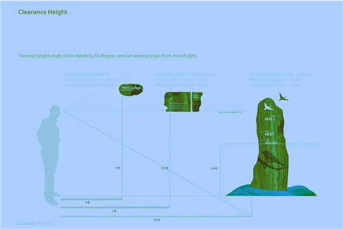 公園的導視系統(tǒng)采用不同的動植物來代表不同區(qū)域的不同功能,例如,小鳥和海面等自然的形象。
