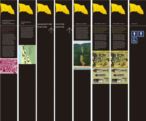 公園的導視系統(tǒng)設計讓游客在園內(nèi)可以通過標識,隨意游覽不同的景點。公園內(nèi)每個獨特的景點都配有獨特的標識,無論是公園內(nèi)的自然環(huán)境,還是歷史遺留的建筑古跡,都為游客提供清晰、明確的引導。