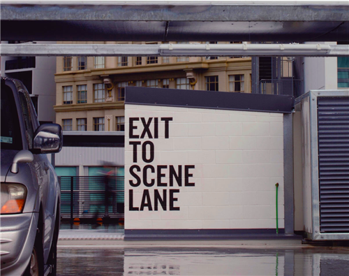 Scher以車輛后座的視覺角度來設(shè)計(jì)最佳的視覺效果,采用了大型字體的設(shè)計(jì)將信息傳達(dá)給大眾,同時(shí)也在一定程度上保證了駕駛者不會(huì)忘記自己把車停在哪里了。警示語的設(shè)計(jì)在一定程度上同樣吸引駕駛者的注意,目的是讓他們意識(shí)到駕駛的安全問題,如“寧讓三分,莫爭(zhēng)一秒”和“請(qǐng)不要停在這里”等,在車場(chǎng)門口,你還看到那醒目的霓虹燈標(biāo)識(shí)。