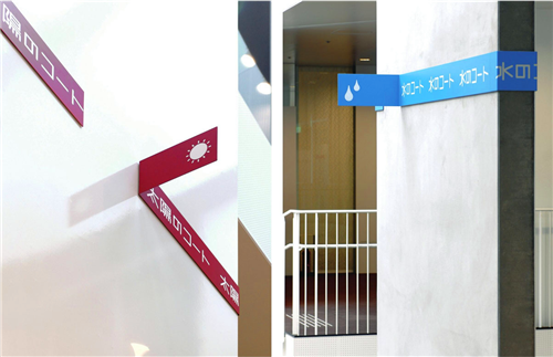 設(shè)計師針對shiojiri市多功能社區(qū)中心中的圖書館、幼兒教育中心和大廳等進行了一系列導視系統(tǒng)、標識、字體和圖形的設(shè)計。