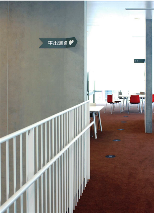 說到導視系統(tǒng)的視覺性,必須要有其鮮明的設(shè)計特征:標識牌的尺寸、圖形的易懂性、擺放的位置、級別的分類、色彩的反差、字體的大小、字距與間距、位置的高低等。文化場館導視系統(tǒng)不僅要實現(xiàn)這些設(shè)計的基本要求,而且還要有一定程度的審美價值,這是文化場館導視系統(tǒng)與其他導視系統(tǒng)區(qū)別最大的地方。一個設(shè)計出色的文化場館導視系統(tǒng),應(yīng)該具有容易讀懂、在瞬間閱讀便一目了然、準確傳達信息,且不造成任何疑惑的特點,并且讓人在視覺上感覺到導視系統(tǒng)不是獨立于建筑設(shè)計的,與室內(nèi)設(shè)計、建筑外形,乃至于室外標識等相融合,在設(shè)計上能與其他設(shè)計領(lǐng)域融為一體。文化場館導視系統(tǒng)在設(shè)計的要求上是難度最大的,它們不僅僅局限于基本的傳遞信息功能,要與周邊建筑、文化場館的主題相結(jié)合。