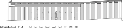 設(shè)計師在入口處采用了水泥柱體的并排設(shè)計,從而代表不同的長度單位,如毫米、厘米、米、碼和尺等,寓意孩子的成長在身體和知識都會慢慢增加,設(shè)計的初衷就是要讓孩子在不知不覺中覺察到自己的成長。