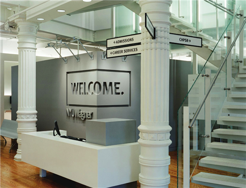 Pentagram設計工作室的設計師Michael Bierut為紐約大學羅伯特弗蘭克研究生的公共服務空間進行品牌設計。學校的歷史悠久,前身是位于華盛頓廣場公園古老的喬治亞大樓,設計師打算將學校的品牌從視覺化的平面擴展到環(huán)境的標識。