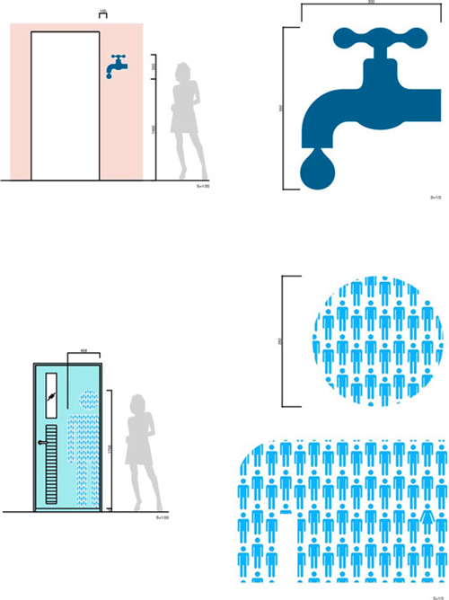 設計的圖案靈感來源于人們各種讀書的神情和姿勢。室內外的標識牌都有不同的文字圖案,它們會出現(xiàn)在不經(jīng)意的地方,甚至運用到盥洗室門口的男性與女性的人形圖案上。導視系統(tǒng)設計無論是在地面還是天花板上,都會發(fā)現(xiàn)圖書館現(xiàn)代與傳統(tǒng)的設計元素,它們見證了圖書館的發(fā)展歷程。