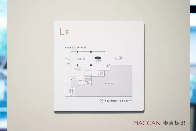 或許因?yàn)閲?guó)土面積狹小的緣故,日本的建筑設(shè)計(jì)更偏愛營(yíng)造出“空”的感覺。Abeyama的導(dǎo)視設(shè)計(jì)亦遵循了這種留白式的傳統(tǒng),簡(jiǎn)練之外沒有多作一分的裝飾,訪客得以保持注意力集中,不受干擾地迅速接收必要信息。