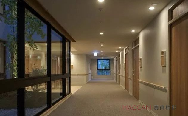 細(xì)看每一個(gè)房間的導(dǎo)視門牌,原來它們還特別作了向外傾斜的設(shè)計(jì),即使是坐在輪椅上的老人也能很清楚地識(shí)別。日本設(shè)計(jì)在細(xì)節(jié)上這么用心,還是挺讓人服氣的。