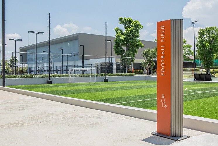 泰國房地產開發(fā)商Lang&Houses 在清邁最大的發(fā)展項目是Serene Lake,它是由單元房項目和共管公寓組成。除了每個項目設施和美麗的80公頃湖泊外,該公司還建立了一個由足球場、籃球場、網球場、游泳池、體育館和帆船俱樂部組成的運動場館。Dinsor不僅為整個運動場館設計了一個綜合性運動場館導視標志,還為該項目創(chuàng)造了一套標識導視系統(tǒng),涵蓋戶外、指示、識別、壁畫和旗幟,橙色、白色與藍色的結合讓整個運動場館標識導視系統(tǒng)散發(fā)出熱情、青春的氣息。