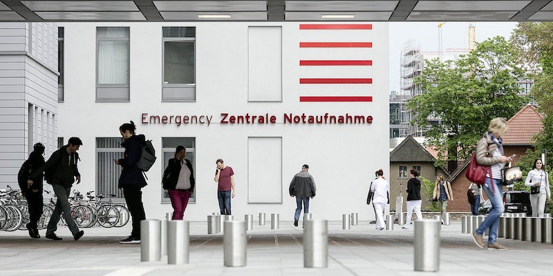 基于翻新后的Charité醫(yī)院,moniteurs公司在應(yīng)急服務(wù)大樓外立面設(shè)計了紅色的線條引導(dǎo)元素,與白色外立面形成強(qiáng)烈的視覺沖擊力,有助于急診快速定位。內(nèi)部巨大的icon便于進(jìn)行訪問,樓層采用色彩編碼,整套導(dǎo)視系統(tǒng)信息完善,具有良好的信息傳達(dá)度。