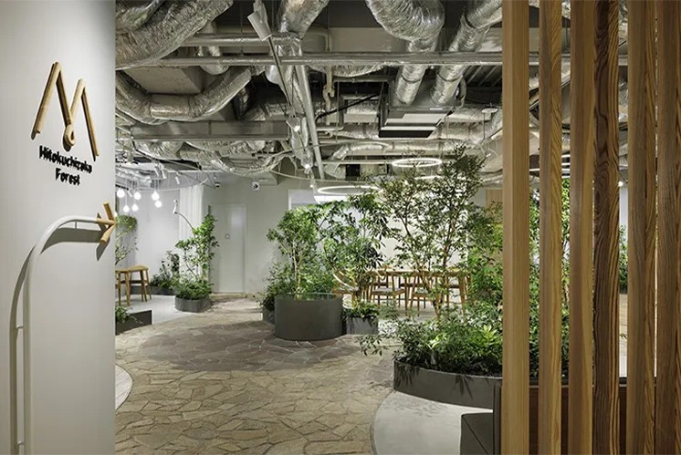 位于東京縣的常陸坂中央大廈,由前田建設(shè)株式會社負責(zé)其全面的翻新工程,其中一樓的多功能會議區(qū)域“森之語堂”以其獨特的木質(zhì)裝飾、生機勃勃的綠色植物和充滿趣味的標(biāo)識設(shè)計而脫穎而出。terada設(shè)計公司受委托為這一空間打造一套完整的導(dǎo)視系統(tǒng),旨在與室內(nèi)裝飾風(fēng)格相得益彰。