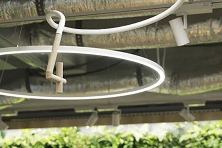 數(shù)字編碼的底座設(shè)計巧妙地與空間中的線圈狀燈飾相融合,這種設(shè)計上的連貫性使得導(dǎo)視系統(tǒng)與整個空間的裝飾風(fēng)格完美統(tǒng)一。設(shè)計公司精心選用木材和金屬作為標(biāo)牌的主要材料,增強了空間的自然感,也為來訪者營造了一個溫馨而舒適的工作環(huán)境。