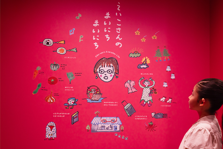 設計團隊大膽采用“去文字化”策略,館內(nèi)說明文字被大幅精簡至遠低于常規(guī)水平,代之以豐富易理解的視覺符號。地面連續(xù)的草莓色“魔法腳印”如童話線索般自然引導動線;展區(qū)入口的立體可翻動“繪本裝置”既是標識也是互動玩具;經(jīng)典角色“黑貓吉吉”圖標則成為“故事體驗區(qū)”的專屬象征。這些設計降低了閱讀門檻,鼓勵兒童通過觀察、觸摸和直覺主動探索。